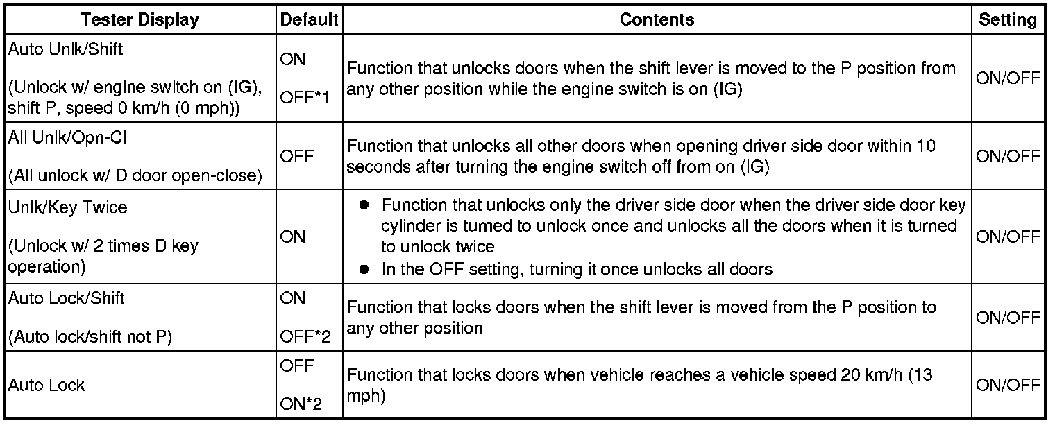 DOOR LOCK: POWER DOOR LOCK CONTROL SYSTEM: CUSTOMIZE PARAMETERS