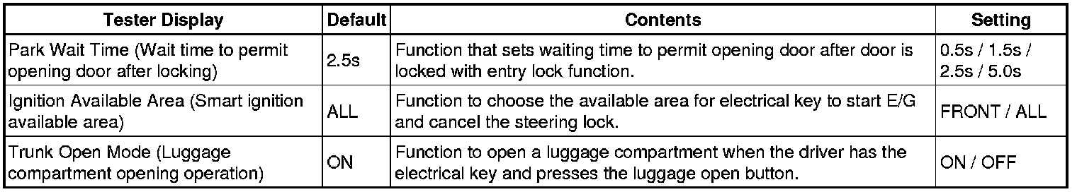 HINT: The function only changes the entry unlock mode of the smart access system with push-button start. It does not switch the unlocking of the wireless door lock control.
