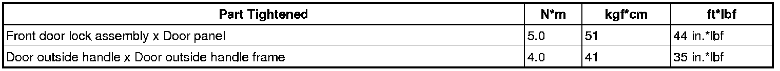 SERVICE SPECIFICATIONS: DOOR LOCK: TORQUE SPECIFICATIONS