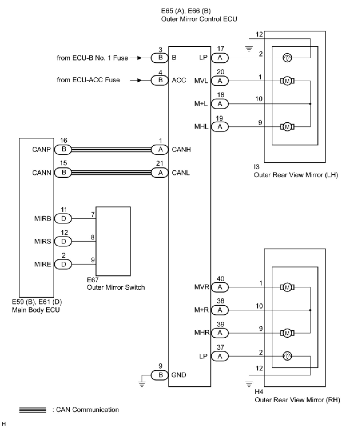 MIRROR: POWER MIRROR CONTROL SYSTEM (w/o Memory): SYSTEM DIAGRAM