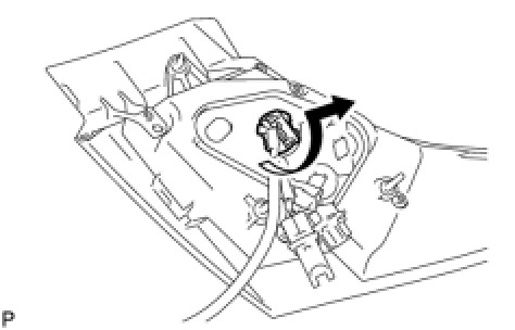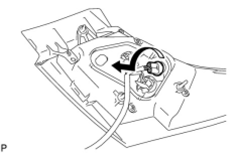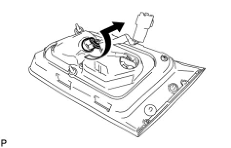 (a) Turn the tail and stop light bulb and the rear combination light socket and wire sub-assembly in the direction indicated by the arrow and remove them as a unit.