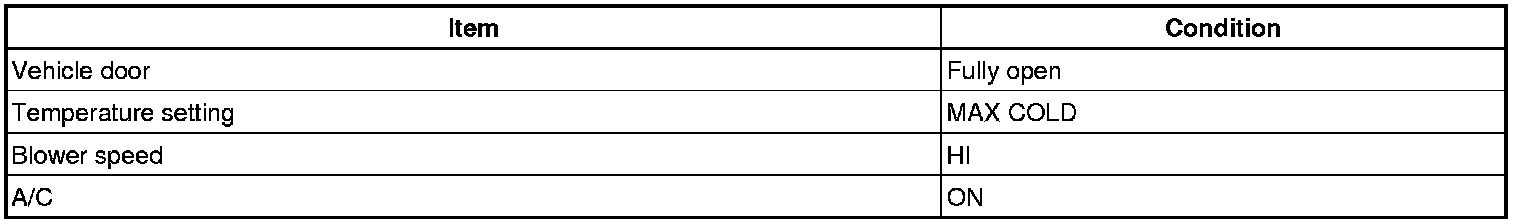 (1) Prepare the vehicle according to the chart below.