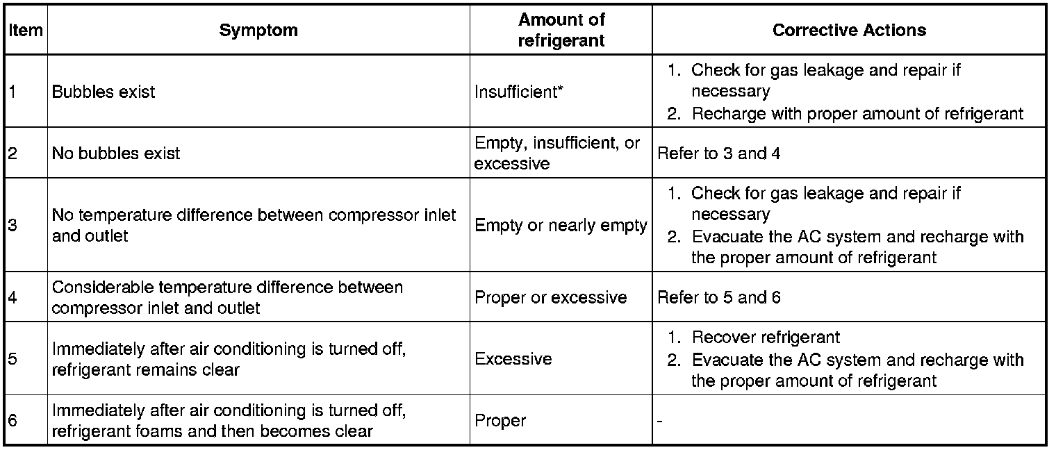*: Bubbles in the sight glass with the vehicle's interior temperature above 35°C (95°F) can be considered normal if cooling is sufficient.