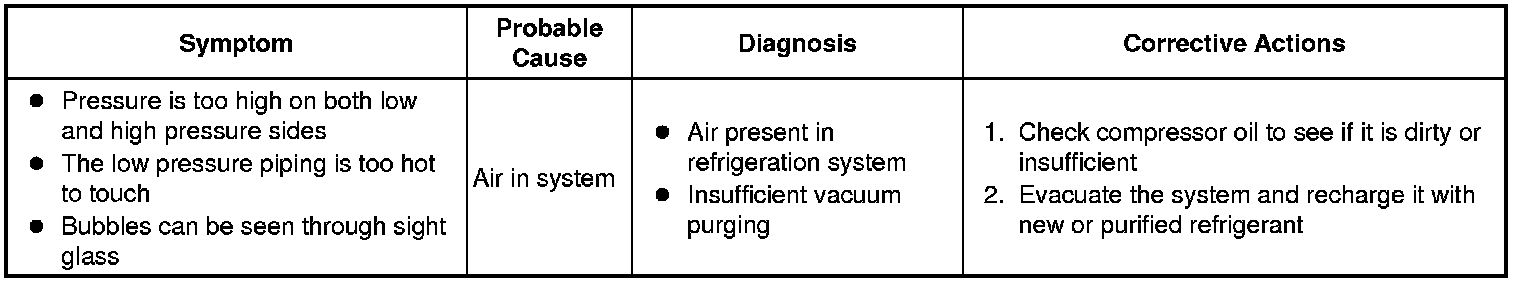 (7) Air is present in refrigeration system.