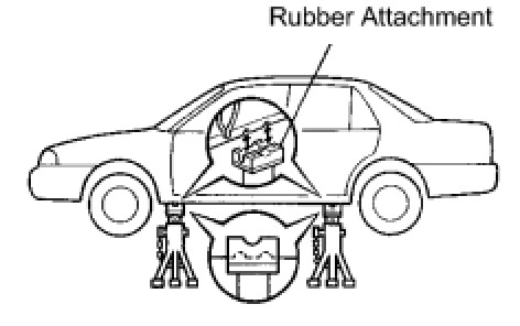 (d) Place the vehicle horizontally by adjusting the height of the cradle, and match the groove of the cradle and the safety stand support location accurately.