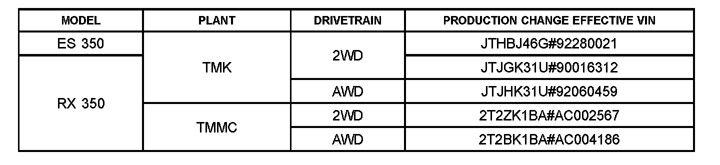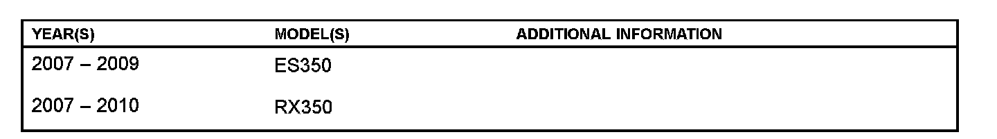 ^ Applicability, Warranty Information, and Repair Procedure sections have been updated to include 2010 model year RX 350.