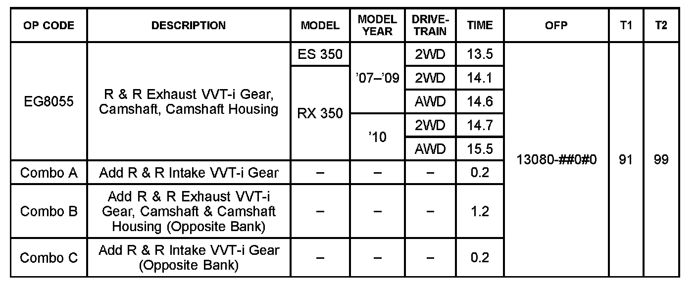 Some 2007 - 2009 model year ES 350 and 2007 - 2010 model year RX 350 vehicles may exhibit a ticking/clicking type noise from the cylinder head cover area that may be accompanied by a MIL "ON" and one or more VVT-i related Diagnostic Trouble Codes (DTCs). Please use the following repair procedure to address customer concerns.