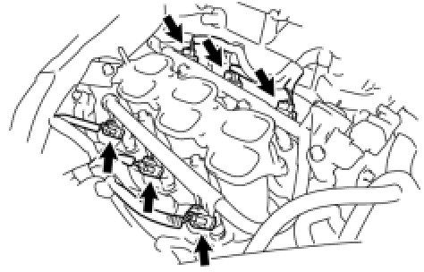 (g) Temporarily install the 5 bolts which are used to hold the fuel delivery pipe to the intake manifold.