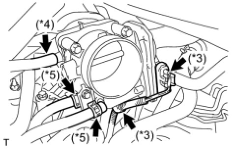 (j) Connect the 2 water by-pass hoses to the throttle with motor body assembly. (*5)