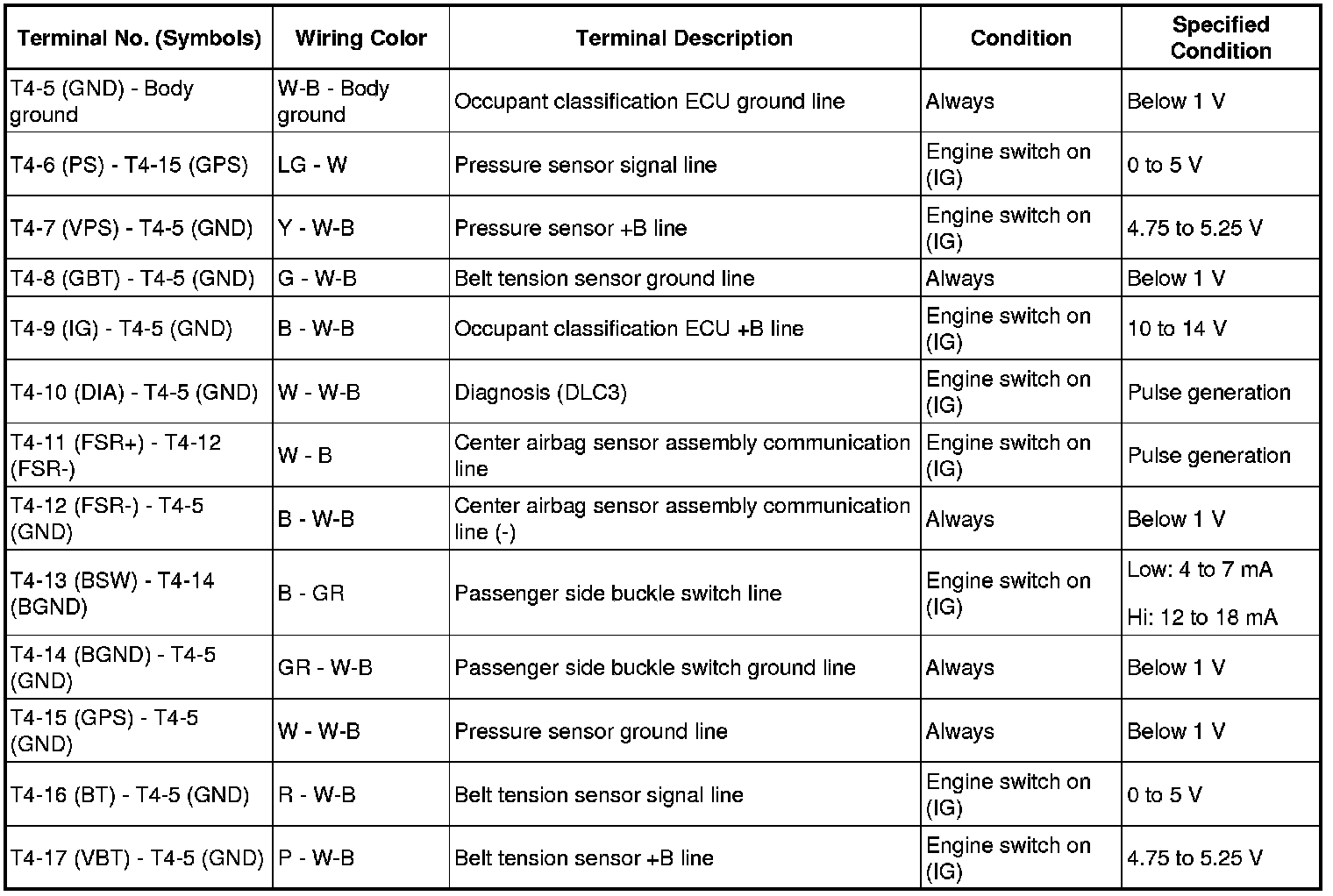 SUPPLEMENTAL RESTRAINT SYSTEM: OCCUPANT CLASSIFICATION SYSTEM: TERMINALS OF ECU