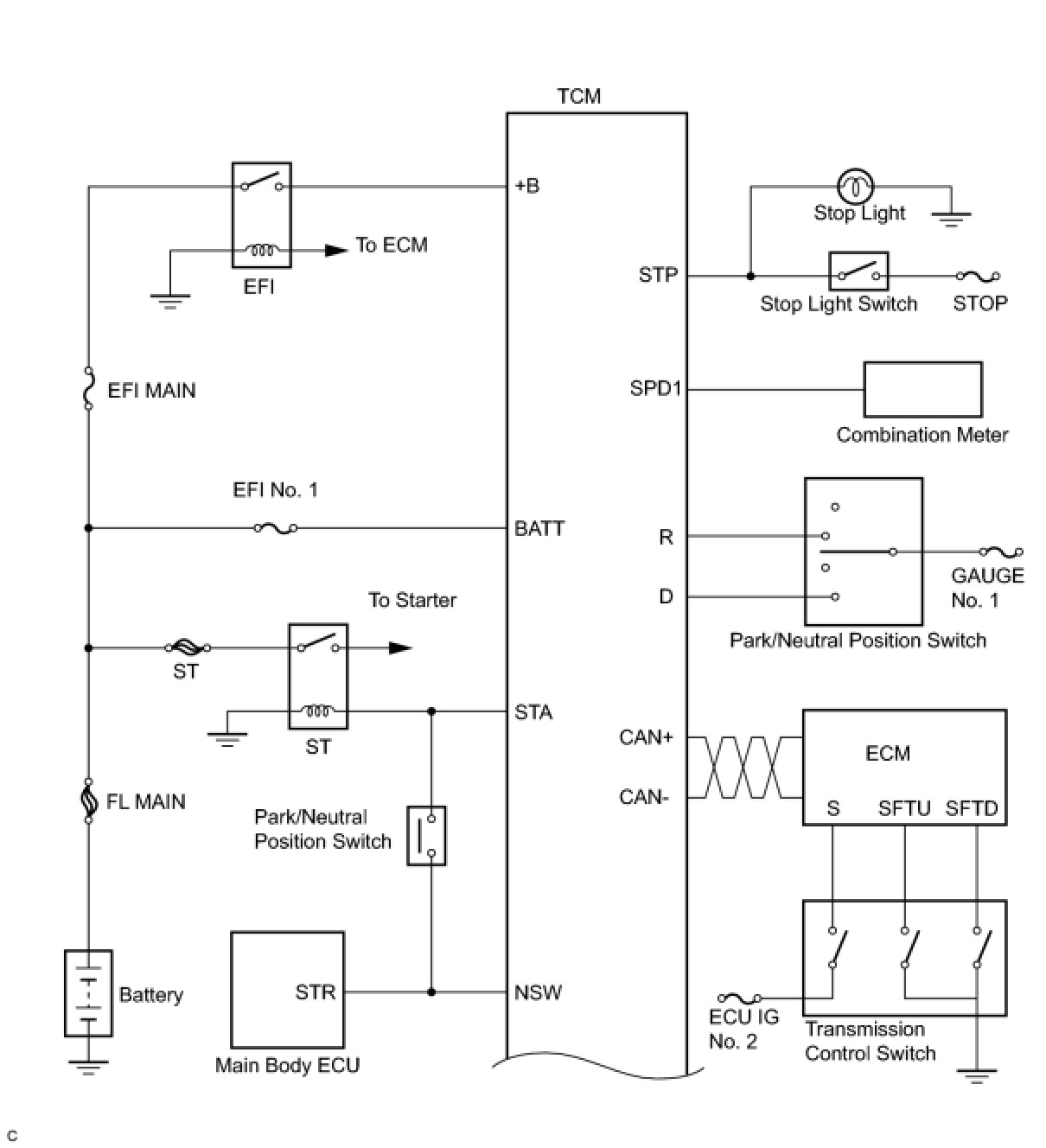 (a) The ECT (Electronic controlled automatic transaxle) is an automatic transaxle that has its shift timing electronically controlled by the Transmission Control Module (TCM). The TCM detects electrical signals that indicate engine and driving conditions, and controls the shift point, based on driver's habits and road conditions. As a result, fuel efficiency and transaxle performance are improved.