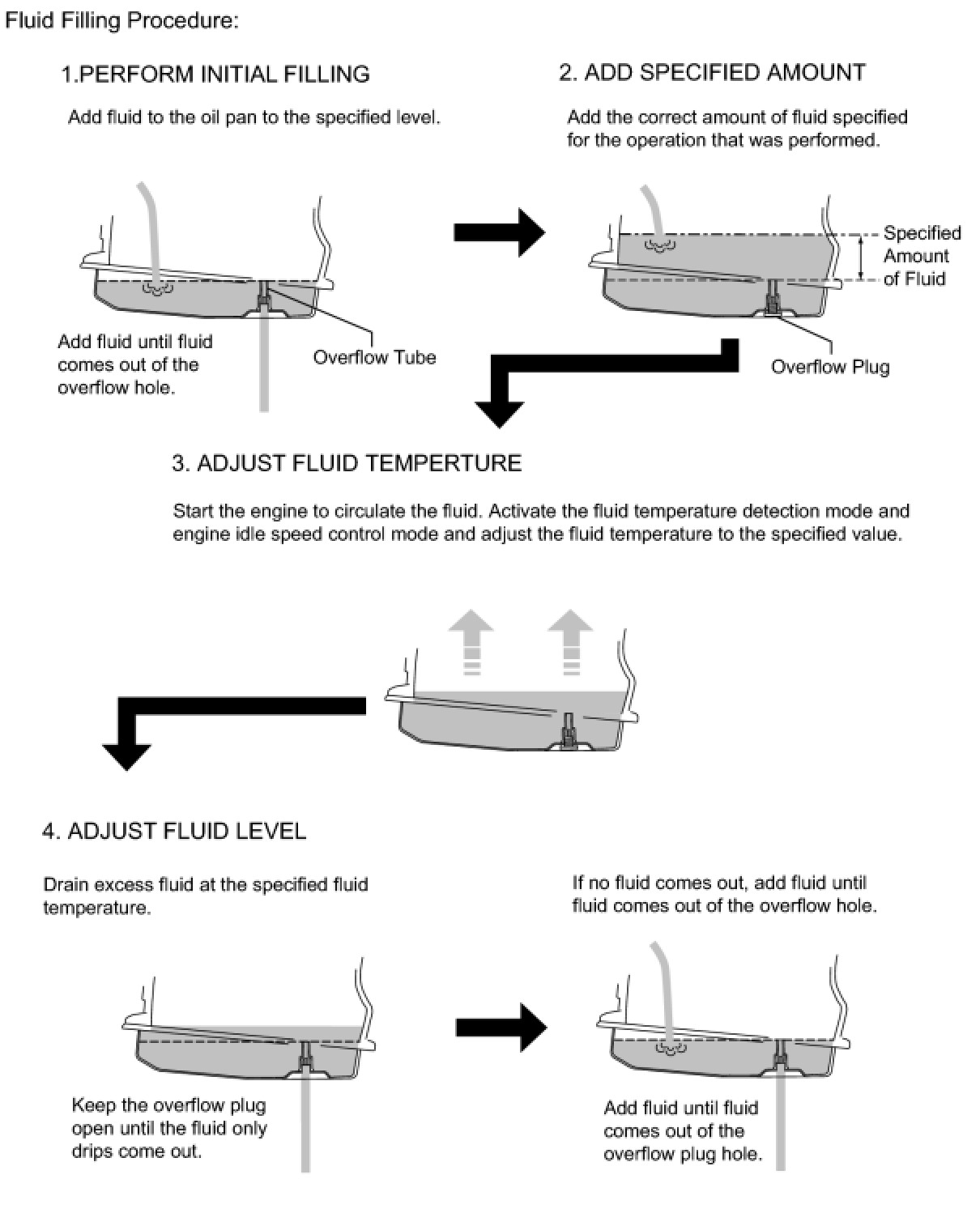 HINT: "Overflow" indicates the condition under which fluid comes out of the overflow plug hole.