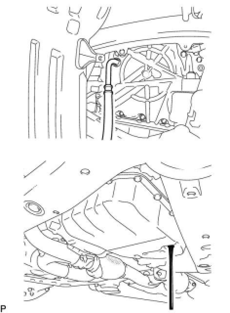 (a) The U660E automatic transaxle does not have an oil filler tube and oil level gauge. When adding fluid, add fluid through the refill hole on the transaxle case. The fluid level can be adjusted by draining excess fluid (allowing excess fluid to overflow) through the overflow tube of the oil pan.