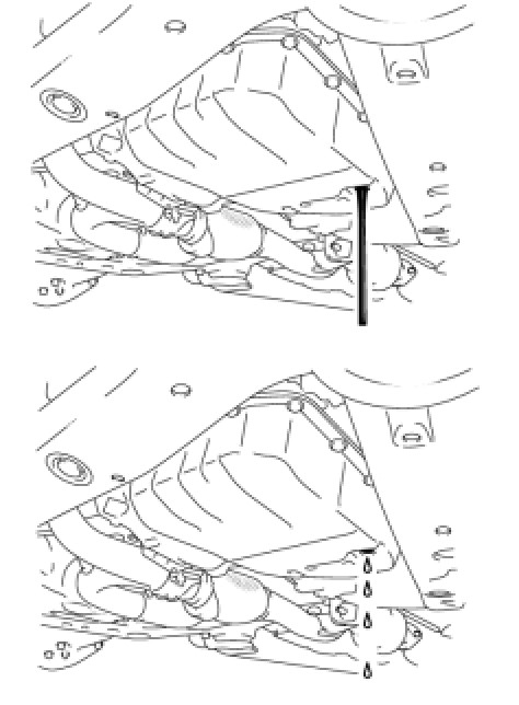 (2) Check the amount of fluid that comes out of the overflow plug hole.