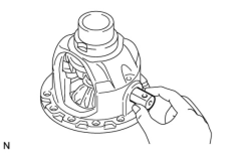 (a) Remove the 2 front differential pinions, 2 pinion thrust washers, 2 front differential side gears, and 2 side gear thrust washers from the differential case.