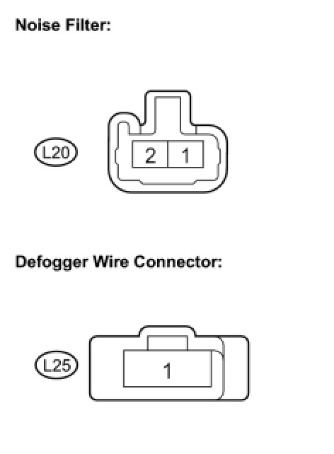 13. CHECK WIRE HARNESS (NOISE FILTER - DEFOGGER WIRE CONNECTOR)