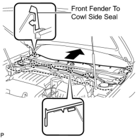 (c) Engage the 2 clips and install the hood to cowl top seal.