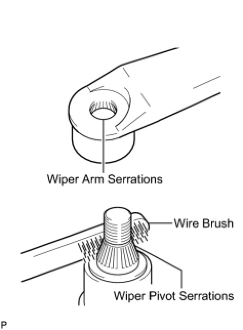 (1) Clean the wiper pivot serrations with a wire brush.