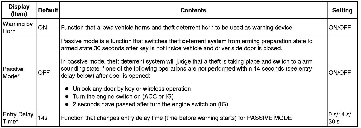 THEFT DETERRENT: THEFT DETERRENT SYSTEM: CUSTOMIZE PARAMETERS