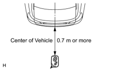 (2) Step 2: Check that when the key is brought within 0.7 to 1.0 m (2.3 to 3.3 ft.) of the vehicle, the system enters unlock standby mode.
