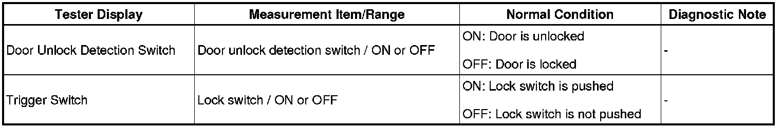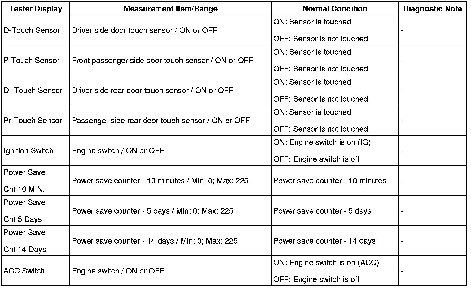 DOOR LOCK: SMART ACCESS SYSTEM WITH PUSH-BUTTON START: DATA LIST / ACTIVE TEST