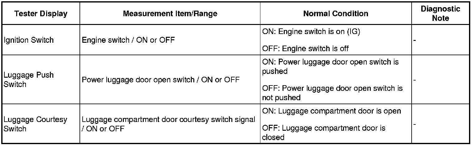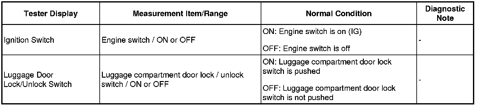 HINT: Using the Techstream's DATA LIST allows switch, sensor, actuator and other item values to be read without removing any parts. Reading the DATA LIST early in troubleshooting is one way to save time.