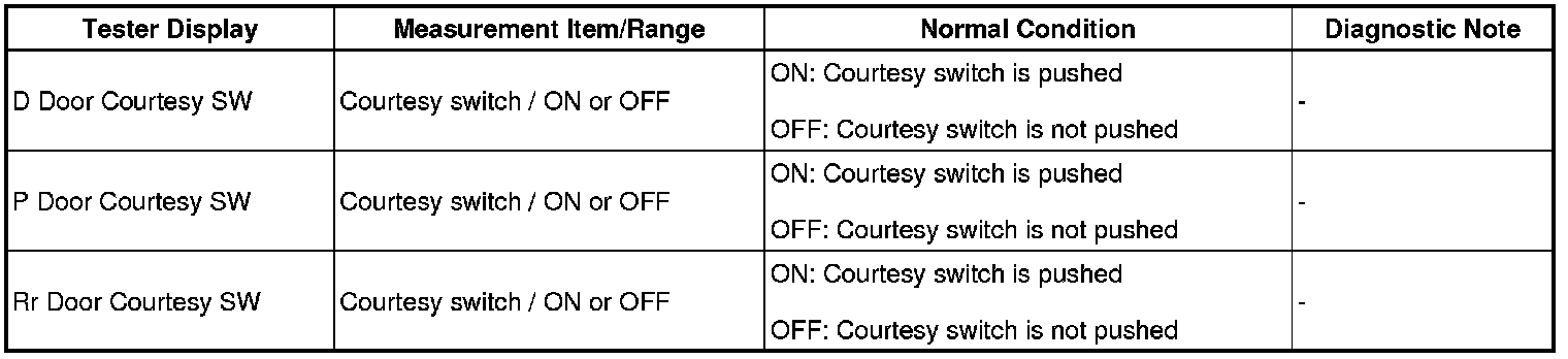 3. READ VALUE USING TECHSTREAM (DOOR COURTESY SWITCH)