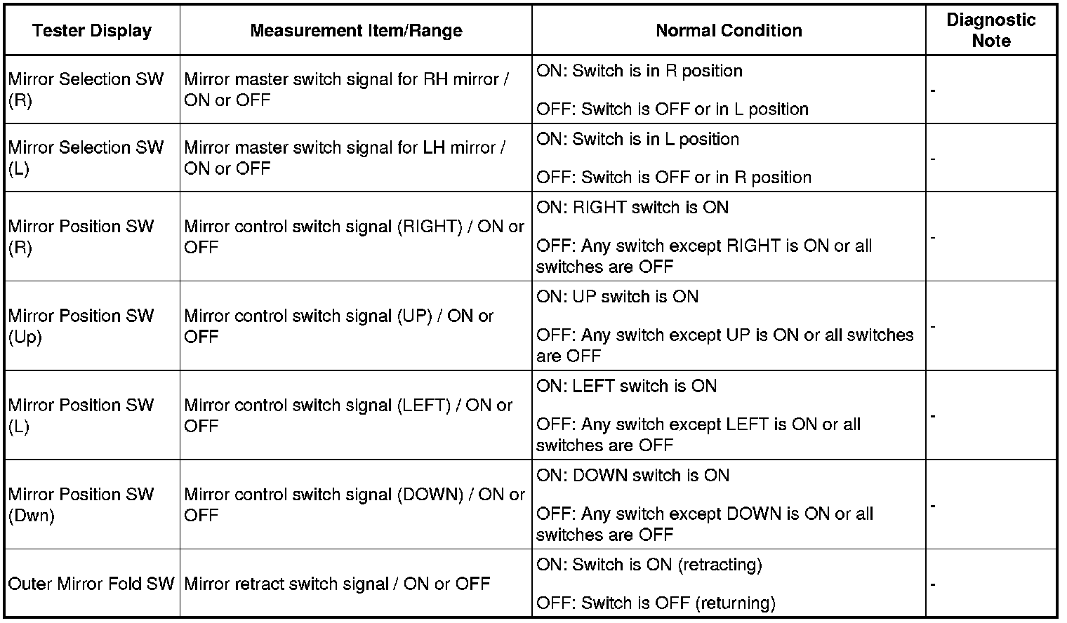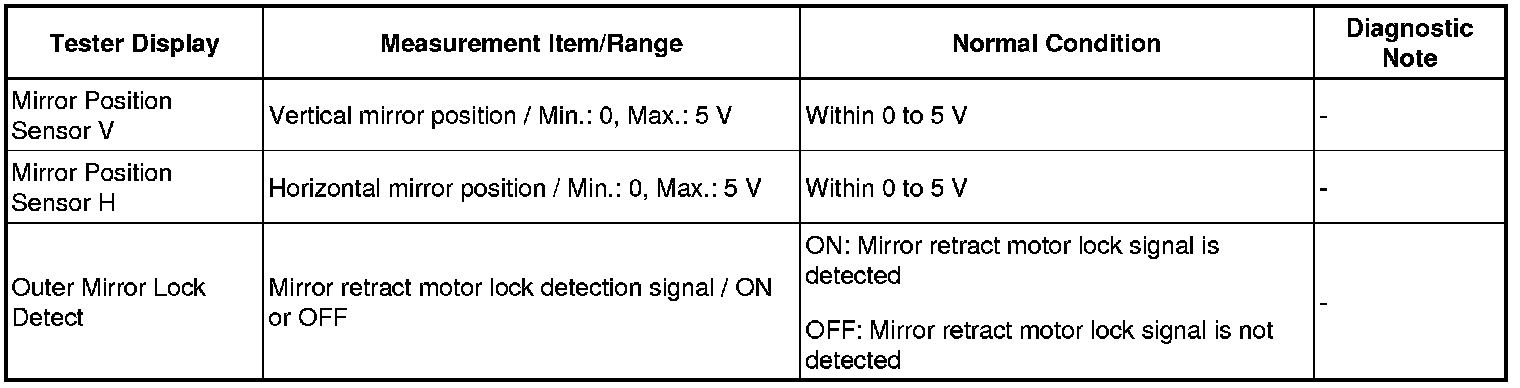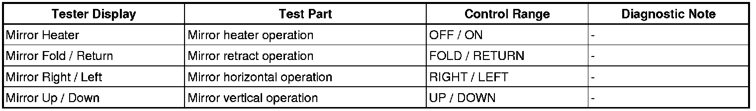 MIRROR: POWER MIRROR CONTROL SYSTEM: DATA LIST / ACTIVE TEST