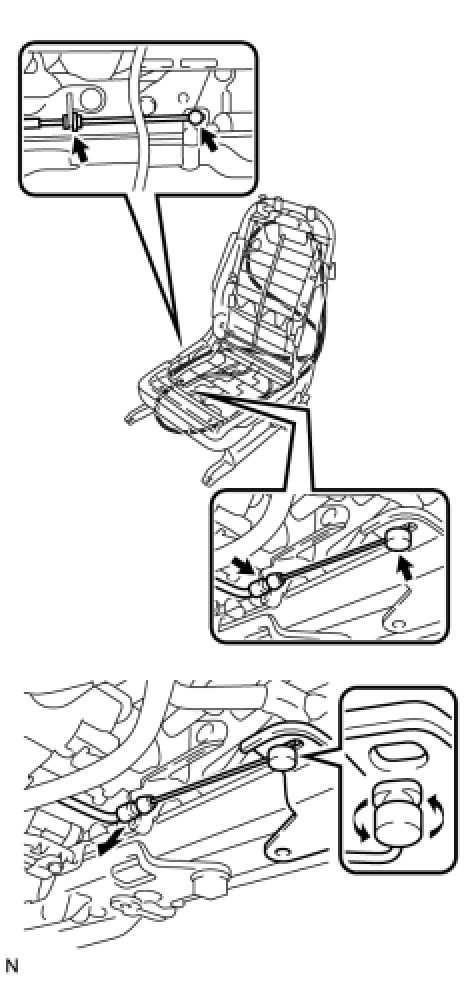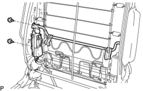 (d) Remove the 2 bolts and headrest adjuster from the seat frame.