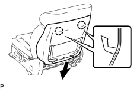 (b) Pull the seatback board in the direction indicated by the arrow in the illustration to detach the 2 claws. Then, remove the seatback board.