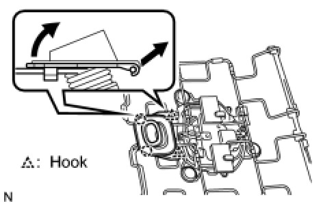 (c) Disconnect the hook of the front seat cushion cover from the front seat frame.