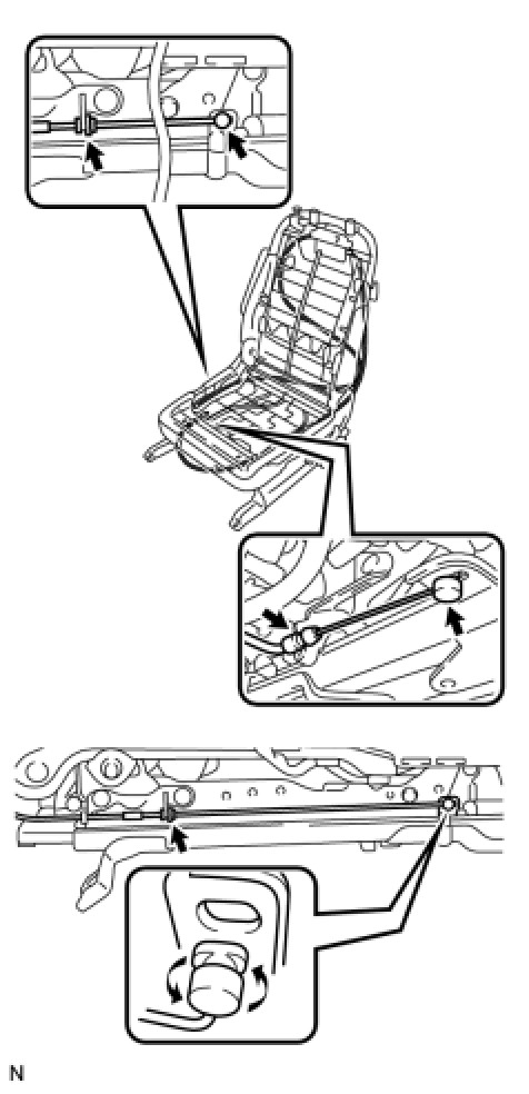 (b) Detach the clamp of the headrest adjuster's cable (driver side).