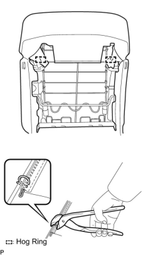 (a) Using hog ring pliers, install the seat cushion cover to the seat cushion pad with new hog rings.