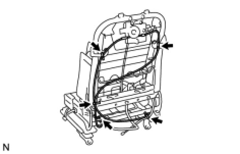 (e) Clamp the cable to the front seat frame with the cable ties as shown in the illustration.