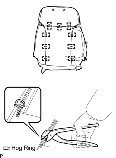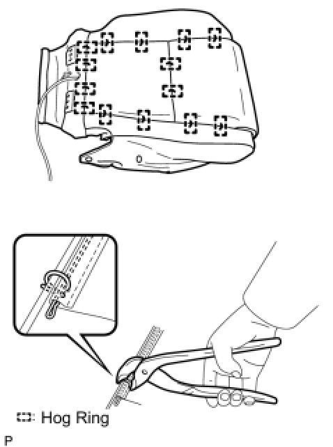 (a) Using hog ring pliers, install the seatback cover to the seatback pad with new hog rings.