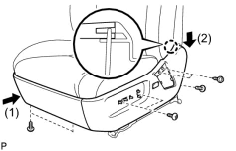 (d) Connect the hook of the front seat cushion cover to the front seat frame.
