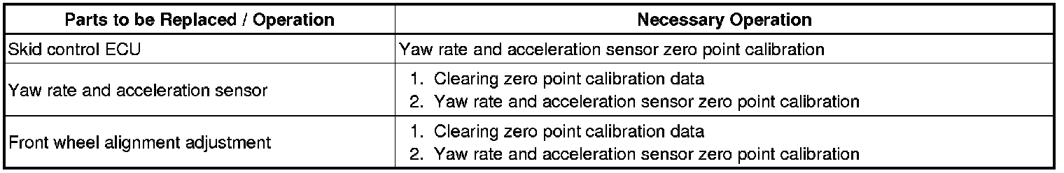 Performing the following procedure will perform the yaw rate and acceleration sensor zero point calibration, and also store system information simultaneously.