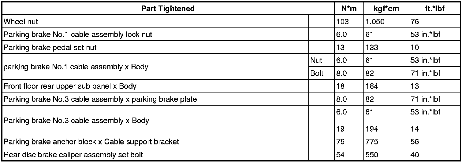 SERVICE SPECIFICATIONS: PARKING BRAKE: TORQUE SPECIFICATIONS