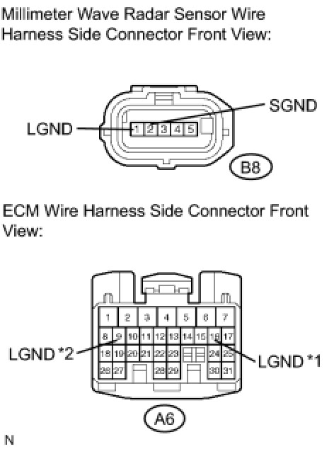 2. CHECK WIRE HARNESS (MILLIMETER WAVE RADAR SENSOR - ECM AND BODY GROUND)