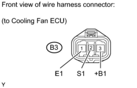 (2) Connect the battery to the cooling ECU at terminals 3 (+B1) and 1 (E1).