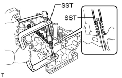 (b) Install the valve, compression spring and spring retainer to the cylinder head.