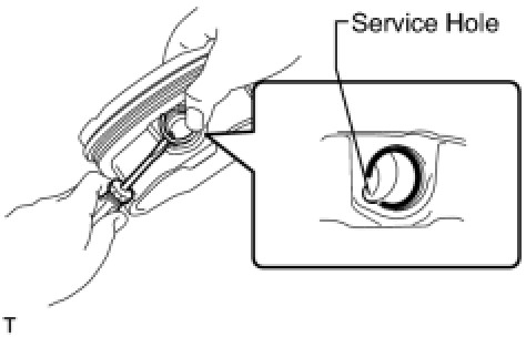 HINT: Be sure that the end gap of the snap ring is not aligned with the service hole of the piston.