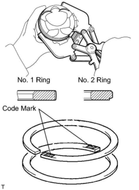 - Install the compression ring No. 1 with the code mark (1N) facing upward.