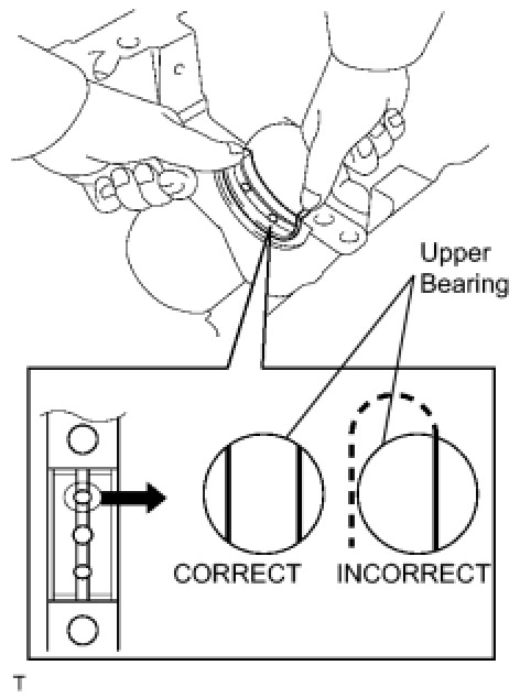 (1) Install the upper bearing to the cylinder block as shown in the illustration.