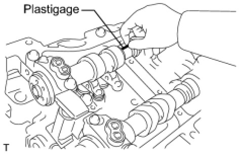 (c) Lay a strip of Plastigage across each of the camshaft journals.