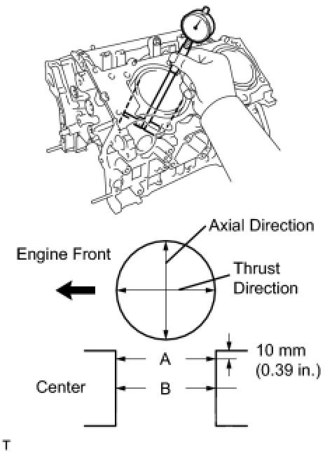 (a) Using a cylinder gauge, measure the cylinder bore diameter at positions A and B in the thrust and axial directions.