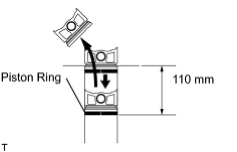 (b) Using a piston, push the piston ring a little beyond the bottom of the ring travel, 110 mm (4.33 in.) from the top of the cylinder block.
