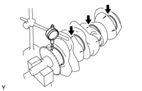 (2) Using a dial indicator, measure the circle runout at the center journal.