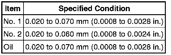 If the end gap is greater than the maximum, replace the piston ring. If the end gap is greater than the maximum even with a new piston ring, replace the cylinder block.