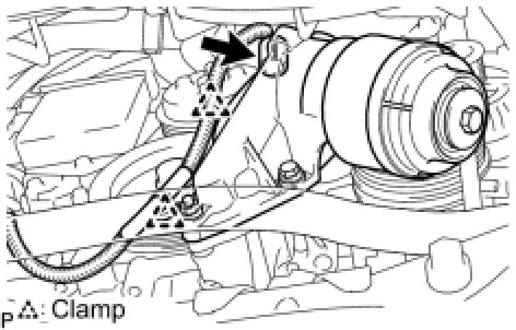 (b) Install the wire harness to connect the connector and attach the 2 clamps.